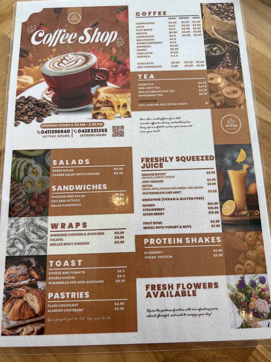 Sit & Sip Cafe Menu